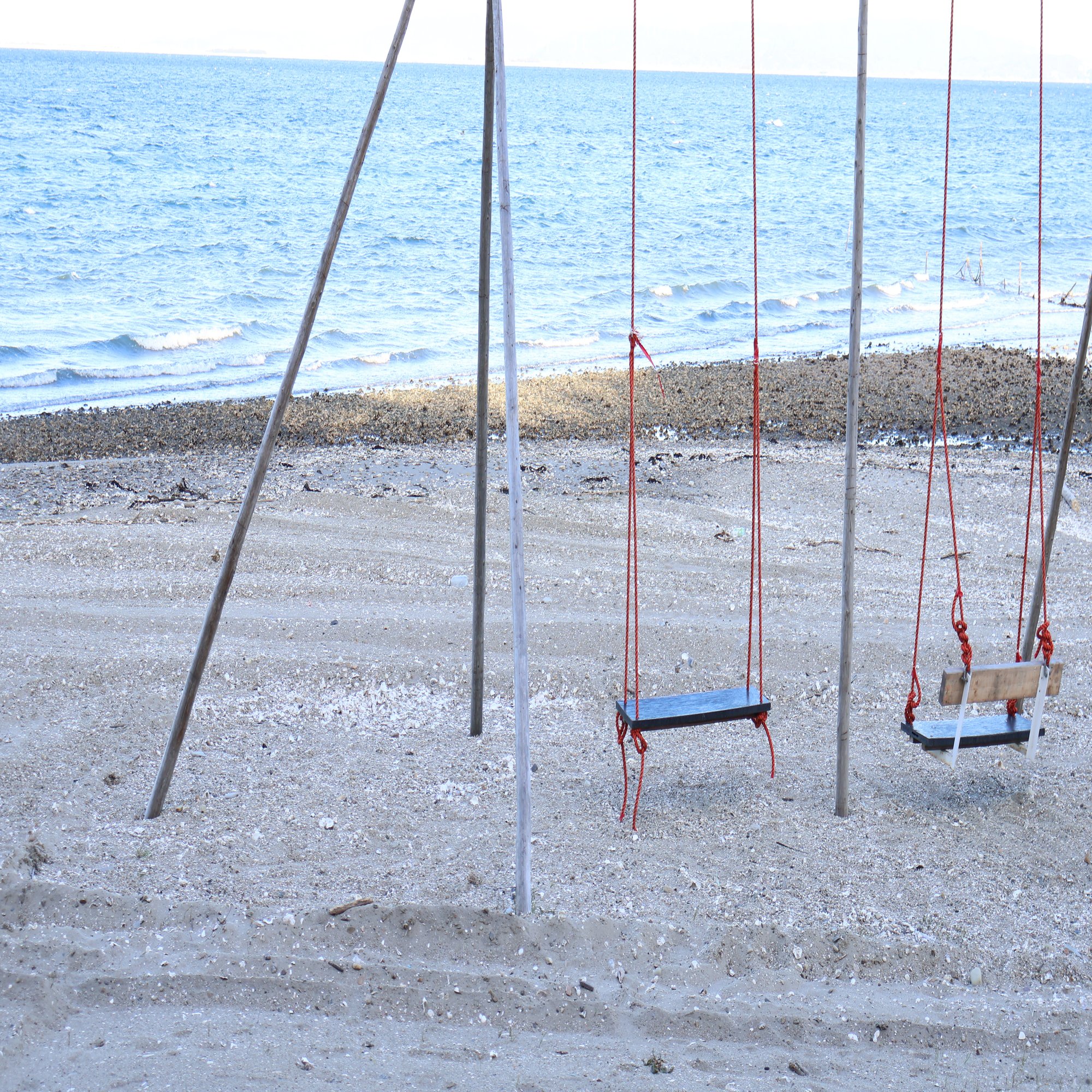 白色の砂浜に白色のブランコというマッチングも最高!そして、この手作り感が味があってまた良い!