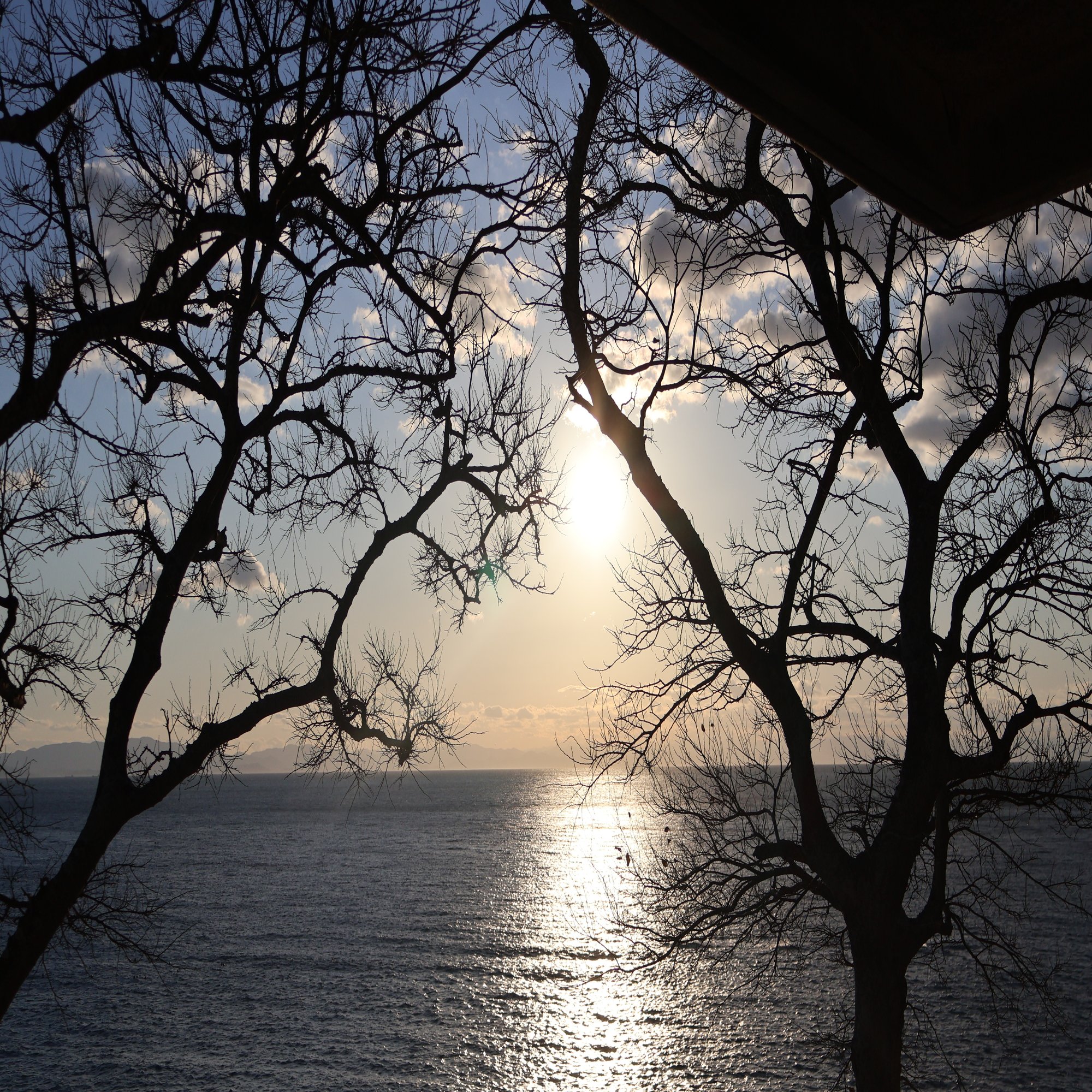 奥に見えるのは近畿地方の山々なので、水平線に太陽が沈む光景は残念ながら見れませんでしたが、ここまで美しい夕日を見れただけでも、幸運が訪れそうな気がします。