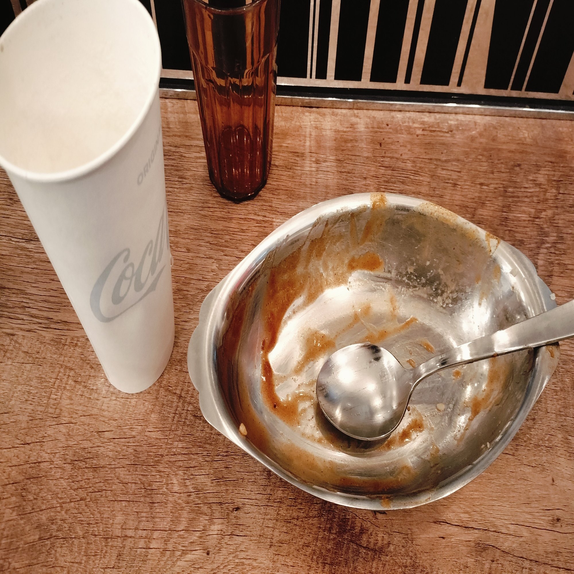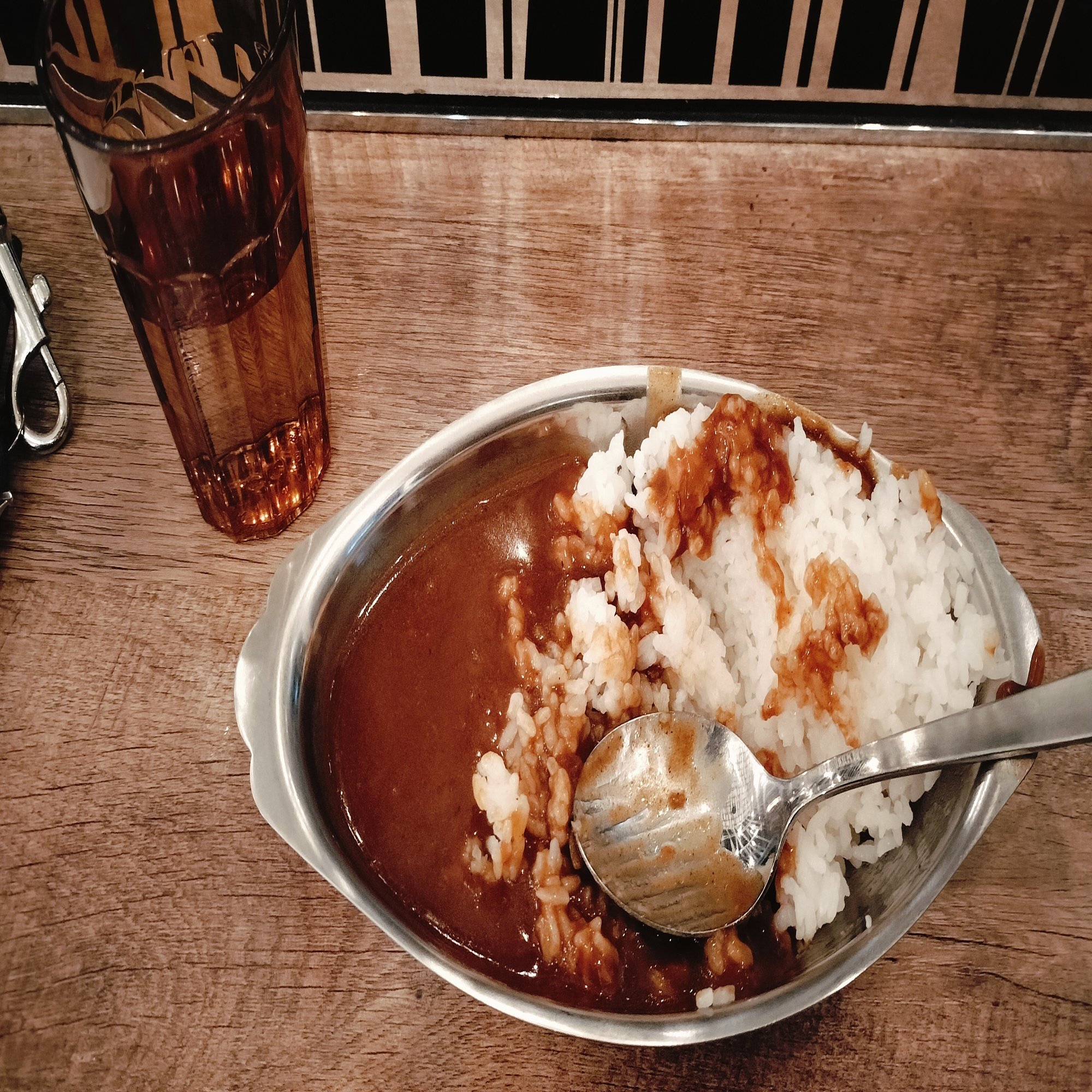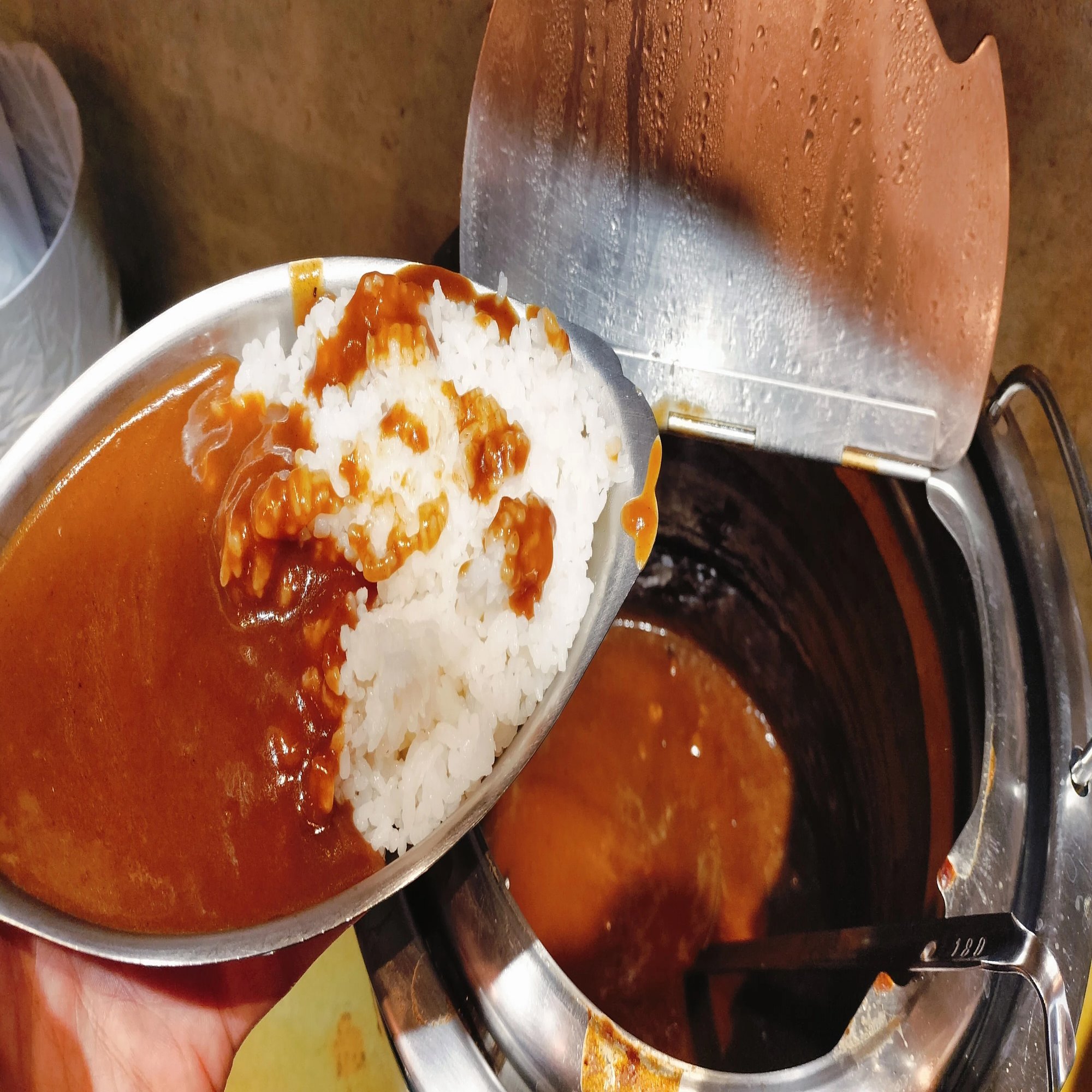 ほぼ24時間ろくなご飯を食べていなかったは、夢中になってカレーを食べていました。気づいたら2杯目のおかわりに行っていて、