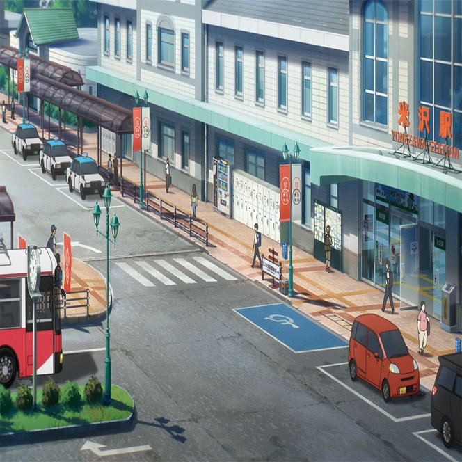 舞台は 山形県米沢市。米沢駅をはじめ、劇中に登場するスポットを歩きながら巡ることができます。