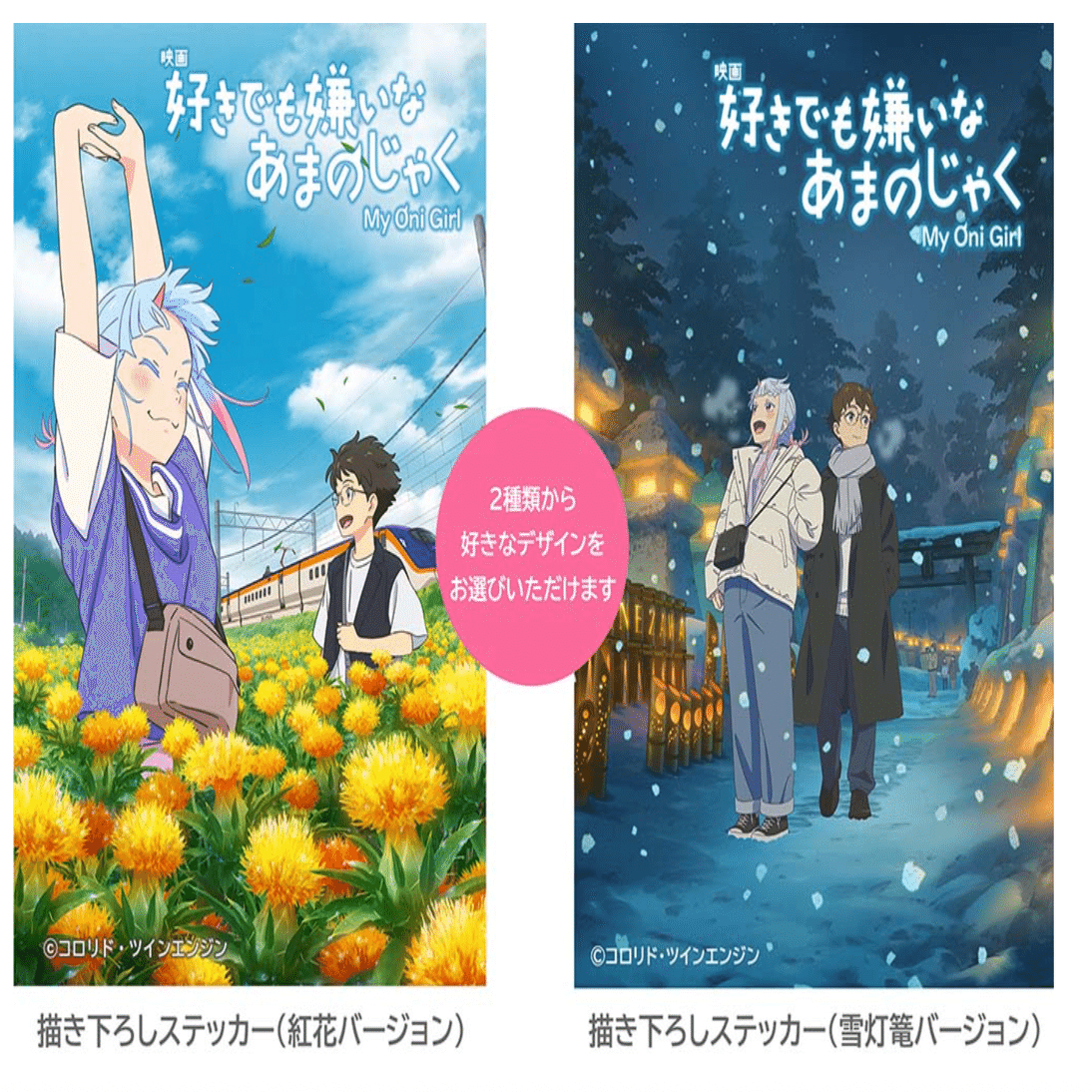 紅花デザイン or 雪灯籠デザインのステッカー から好きなものを選べます!